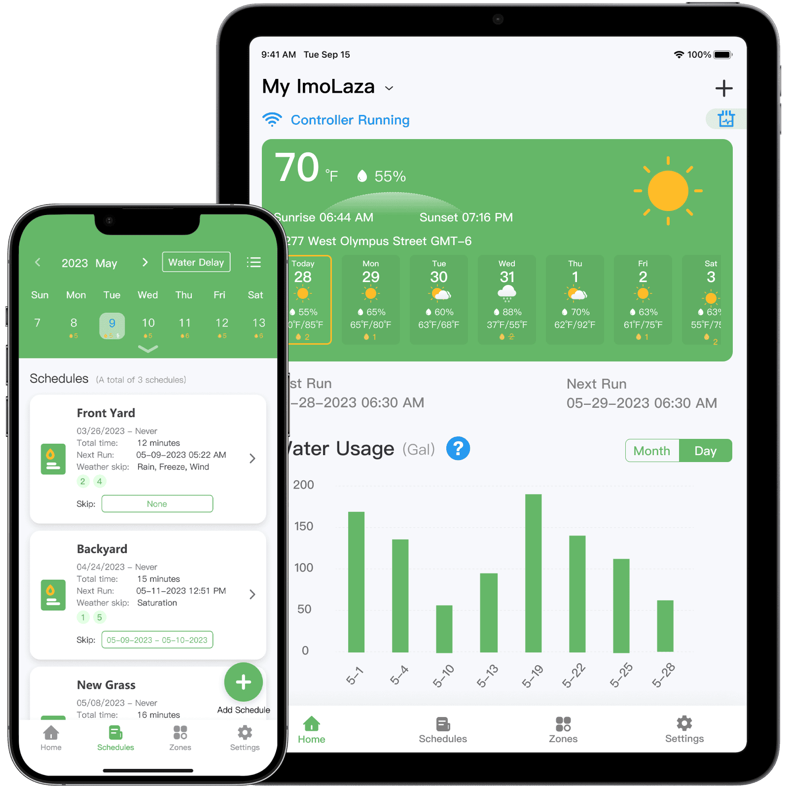ImoLaza puts power right at your fingertips. With our intuitive mobile app, you can easily monitor and understand various schedule execution statuses, content, intervals, cycles, and more - all in a clear, accessible format. Break free from the constraints of outdated screen displays. No more squinting at outdated controller screens or wrestling with complex data. With ImoLaza, all the information you need is just a tap away - making your irrigation control simpler and more intuitive than ever. |