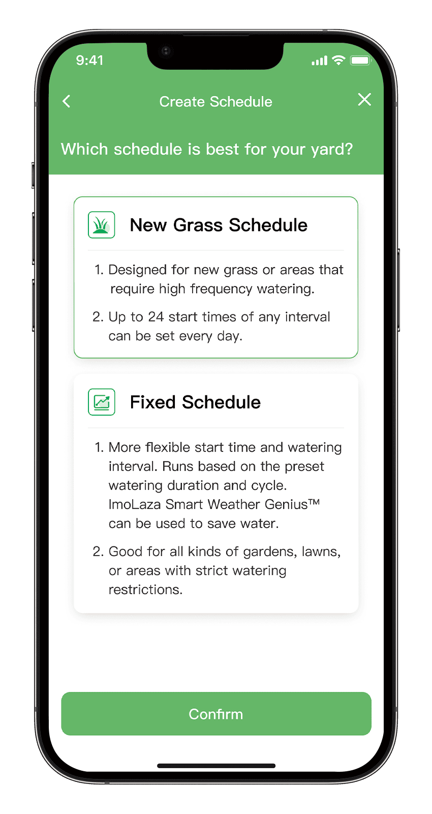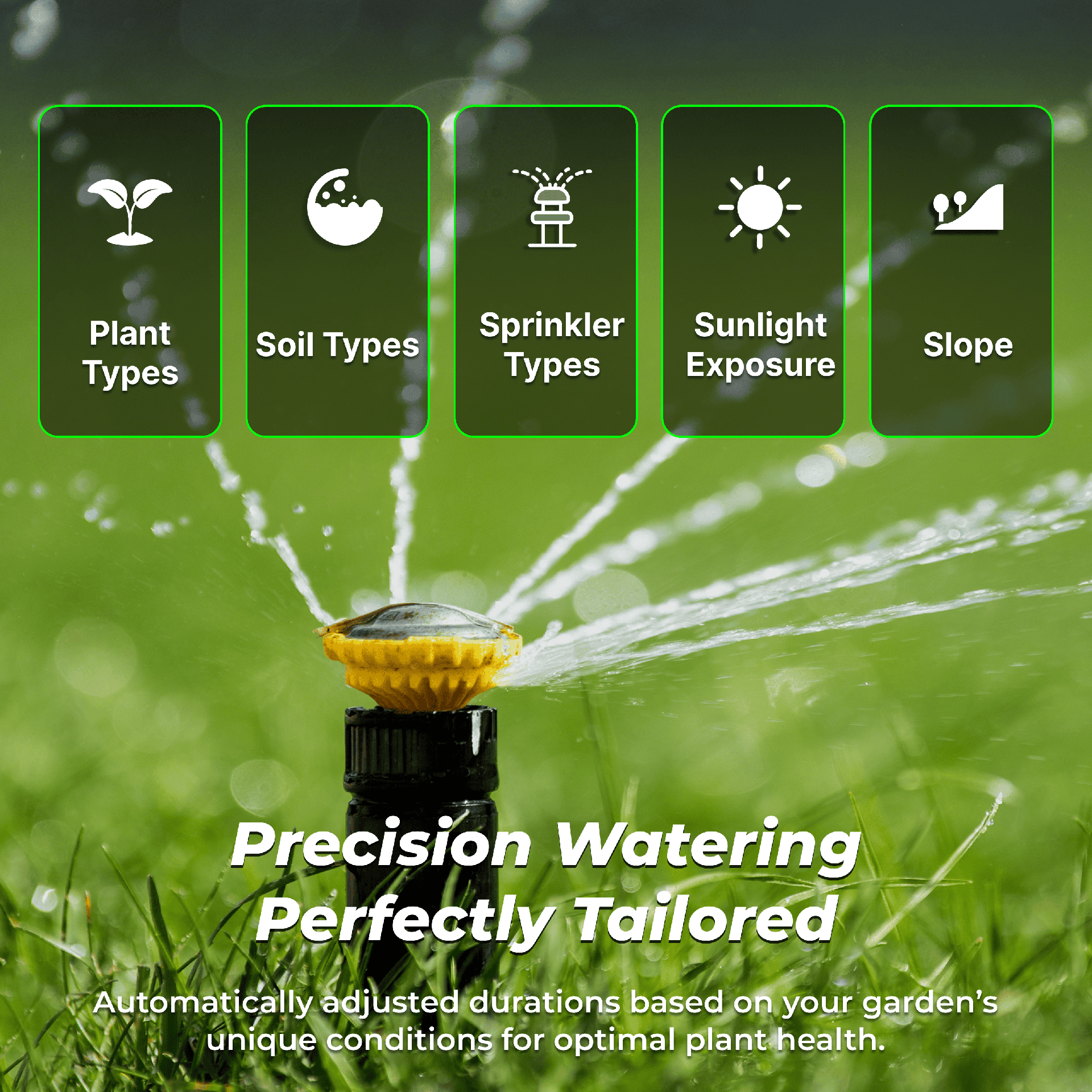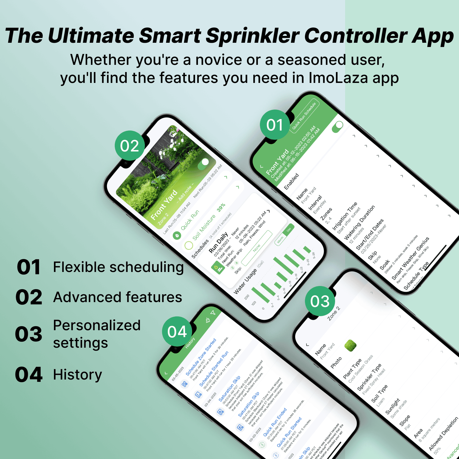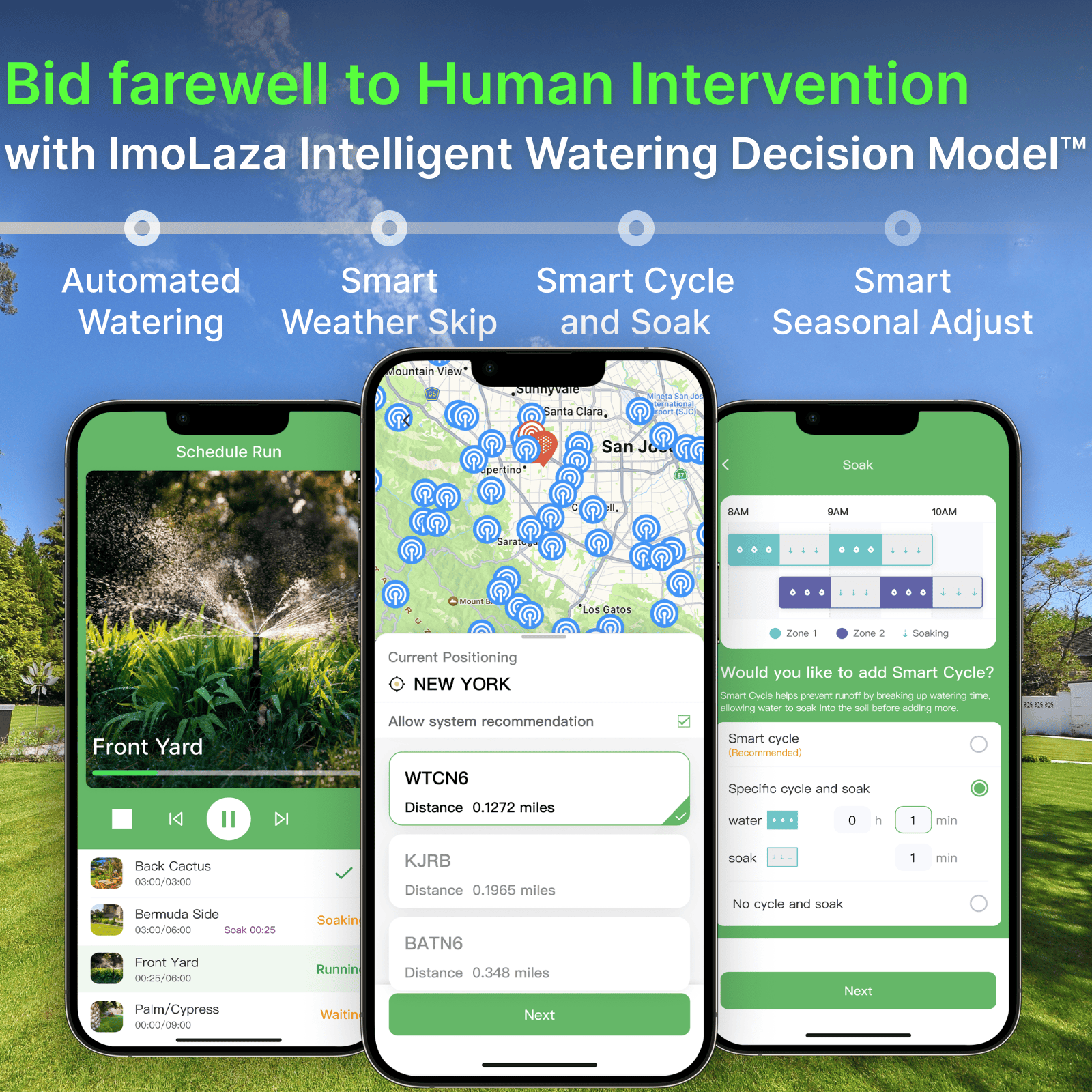 ImoLaza's unique super water-saving mode; Automatically generates watering duration and intelligently adjusts watering frequency with weather, season, and climate changes; Ensure healthy lawn growth while maximizing water conservation.
