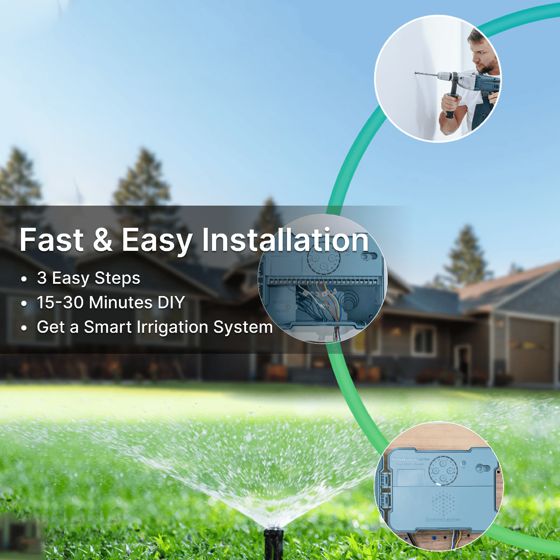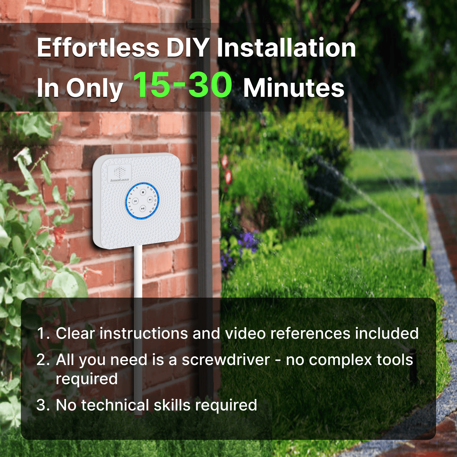 The ImoLaza smart sprinkler controller is fully compatible with all sprinkler systems that adhere to the widely adopted US 24VAC standard, used by over 99.99% of mainstream irrigation brands in the US. It seamlessly upgrades traditional sprinkler systems to intelligent ones, offering a simple and convenient installation process that even beginners can complete within 15-30 minutes by following the provided instructions.