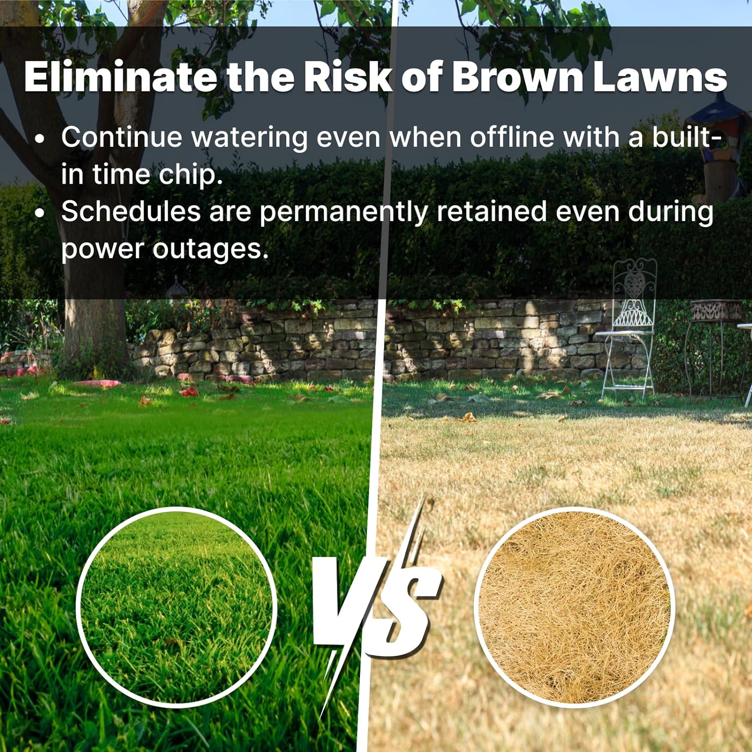 The ImoLaza smart sprinkler controller features a built-in RTC (Real-Time Clock), which ensures accurate timekeeping even during temporary power outages or network disruptions. While the controller itself cannot operate without power, the RTC preserves the correct time. Once power is restored, your irrigation schedule will continue to run on time without requiring manual resets—delivering consistent and reliable watering to keep your lawn and garden in optimal condition. |