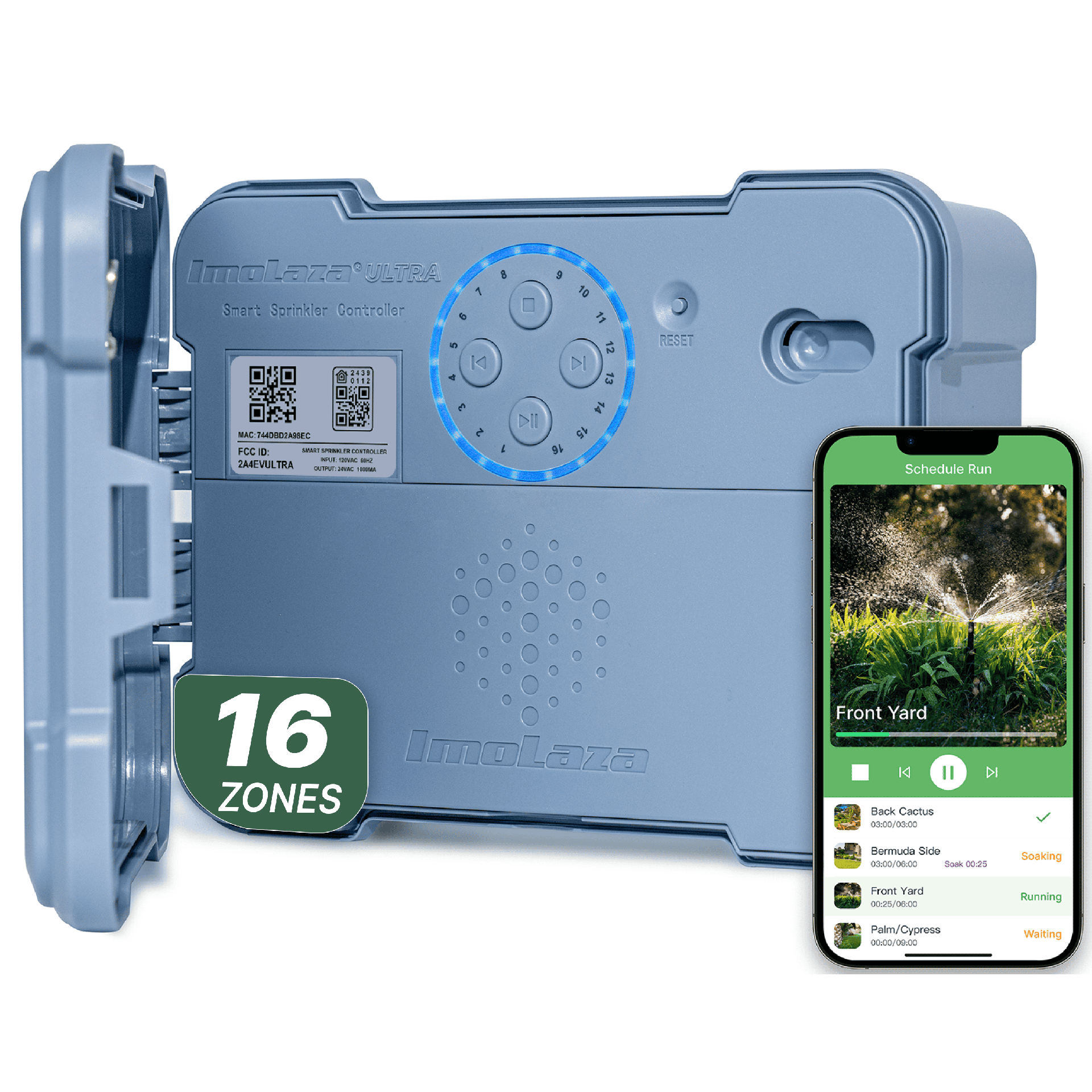 ImoLaza is equipped with the most powerful 2.4GHz WiFi system-on-a-chip (SoC), renowned for its exceptional wall penetration capabilities. Its high-powered remote radio provides ImoLaza with a stronger signal connection. A more robust Wi-Fi connection means less signal loss and fewer disruptions due to interference, enabling ImoLaza to maintain a super-stable connection with the cloud-based Smart Weather Genius™ and Intelligent ET Master™ at all times. With ImoLaza's smart controller, you will enjoy an unparalleled user experience and unmatched water-saving capabilities.