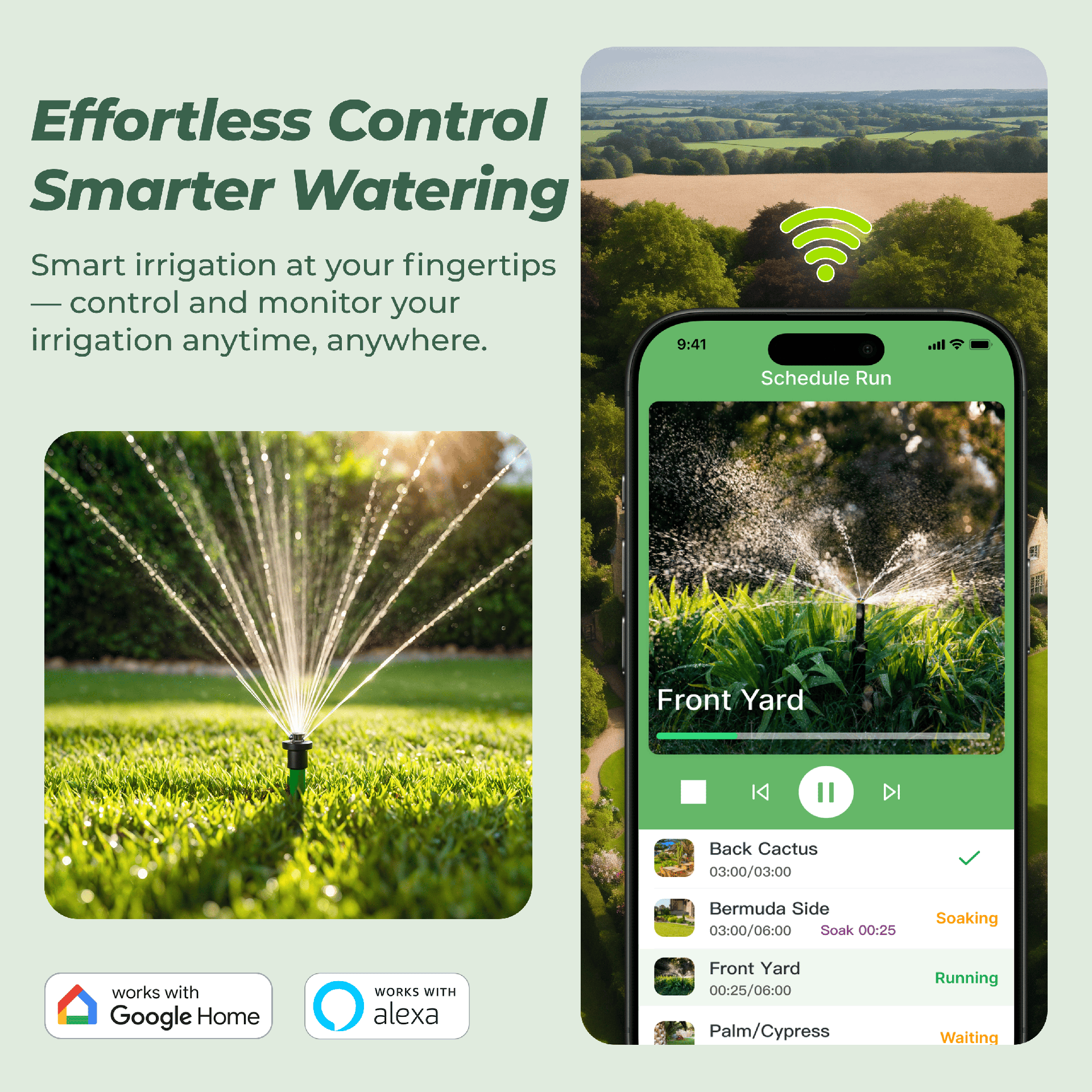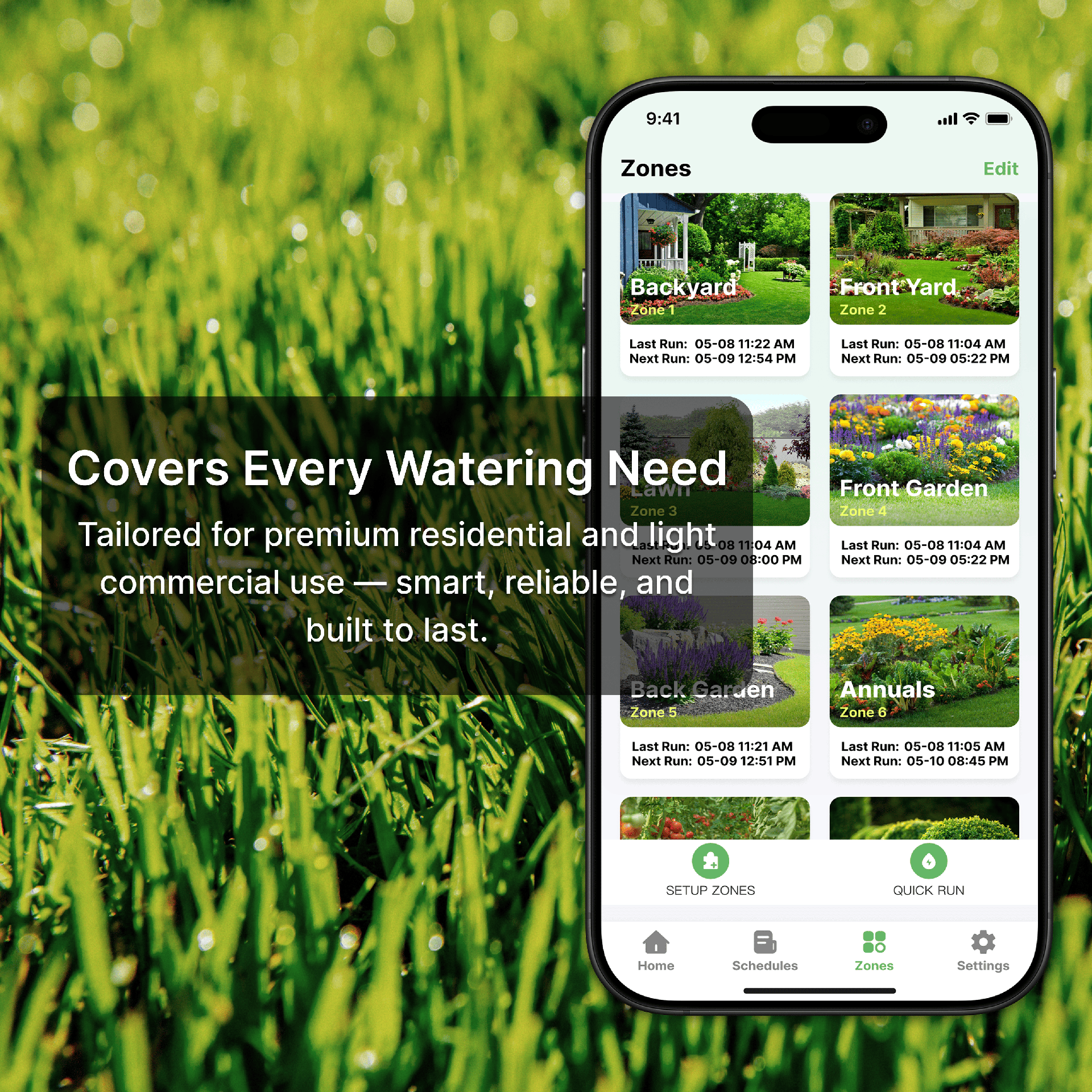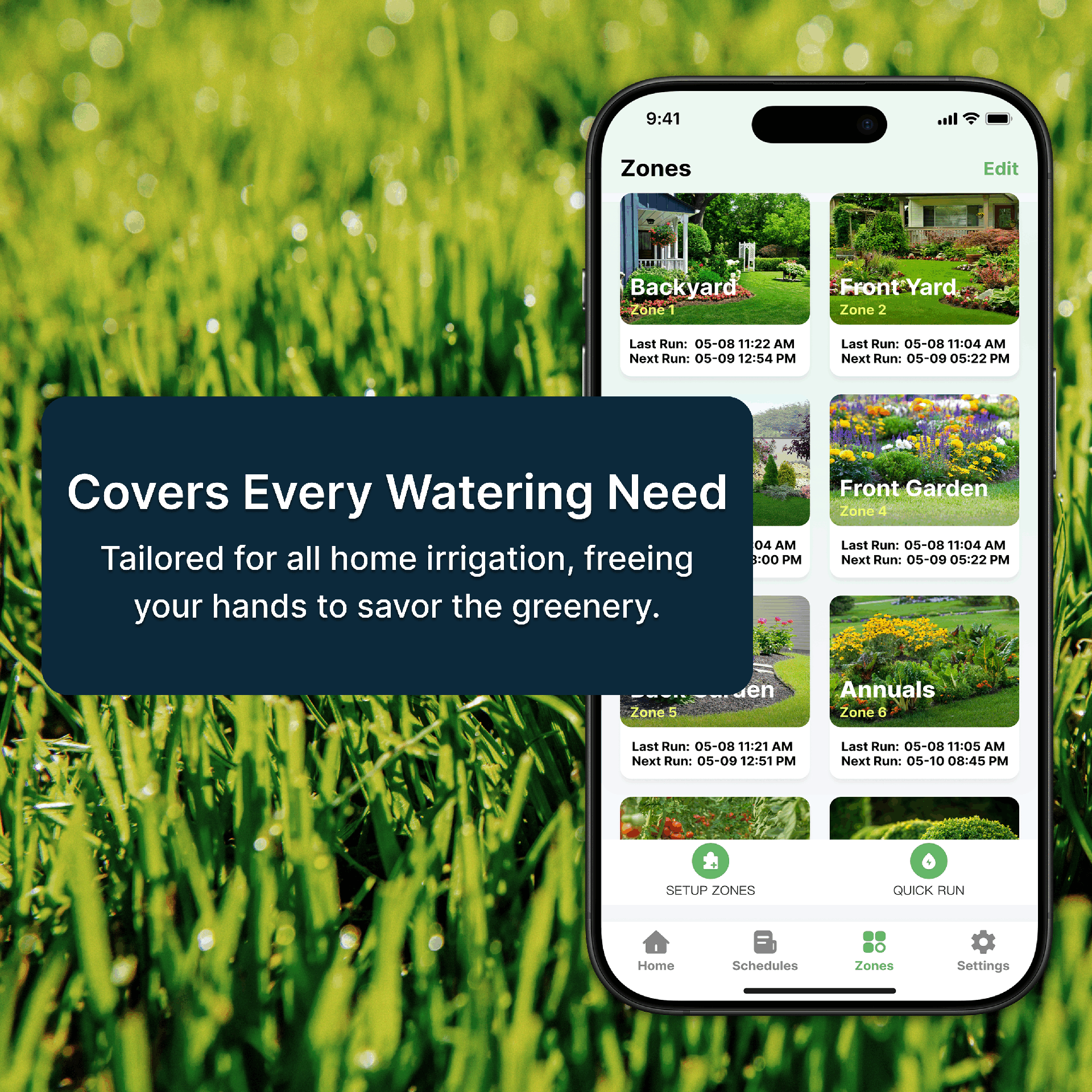 The ImoLaza Smart Controller is tailored for all kinds of home lawns, accommodating various watering needs. Whether you have cool-season or warm-season grass, a newly growing or mature lawn, located in a humid or dry region, and from sweltering summers to delightful autumns, our intelligent controller tailors the perfect watering schedule for your lawn. Start using the ImoLaza Smart Controller now and embark on an exceptional and efficient personalized lawn care journey!